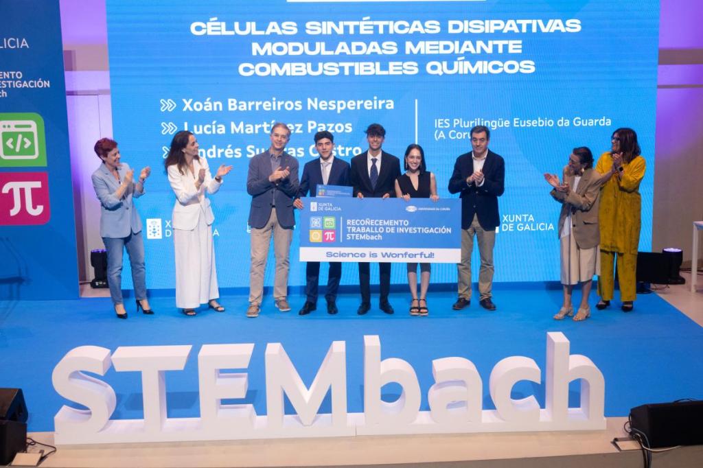 June 2025: Xoán, Lucía and Andrés, STEMBach students from the IES Eusebio da Guarda won an award at the recognition ceremony for STEMBach research projects by the Xunta de Galicia.