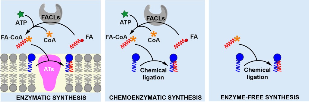 “Chemoenzymatic generation of phospholipid membranes mediated by type I fatty acid synthase”. Satyam Khanal, Roberto J. Brea, Michael D. Burkart, Neal K. Devaraj. J. Am. Chem. Soc. 2021, 143 (23), 8533-8537. DOI: 10.1021/jacs.1c02121.