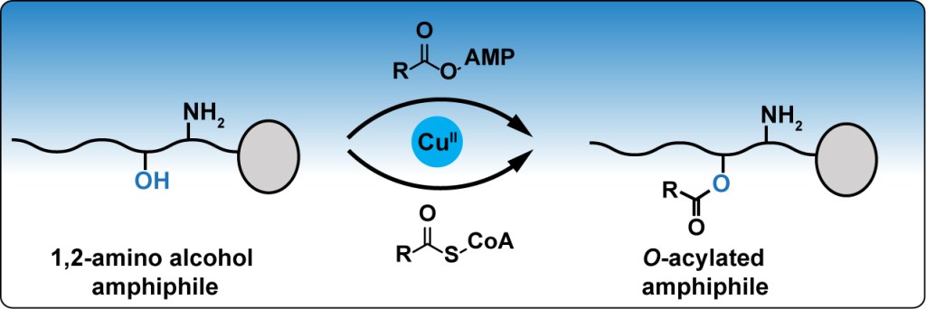 “Chemoselective esterification of natural and prebiotic 1,2-amino alcohol amphiphiles in water”. Ahanjit Bhattacharya, Lalita Tanwar, Alessandro Fracassi, Roberto J. Brea, Satyam Khanal, Marta Salvador-Castell, Sunil K. Sinha, Neal K. Devaraj. J. Am. Chem. Soc. 2023, 145 (49), 27149-27159. DOI: 10.1021/jacs.3c12038.