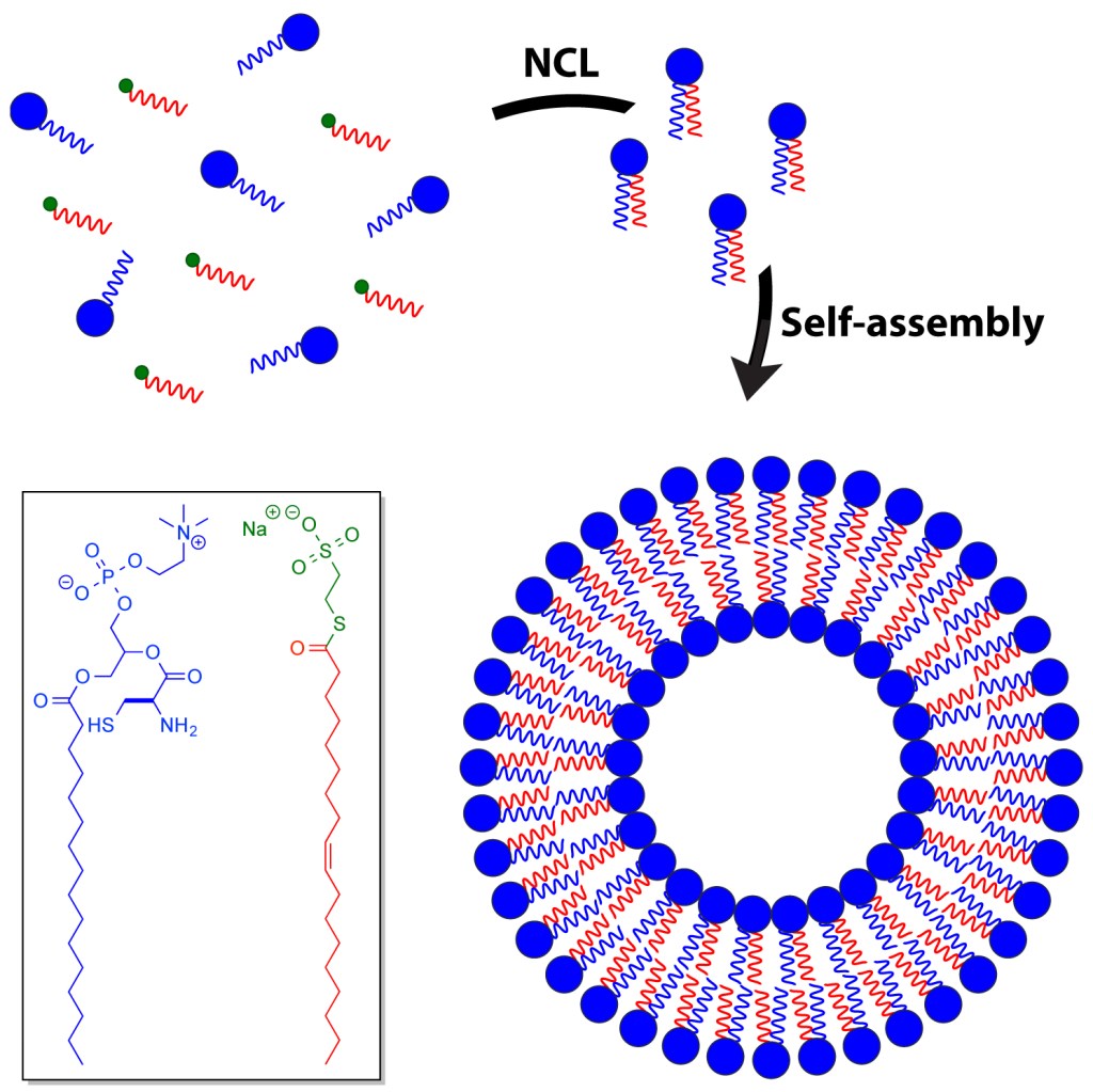 “In situ vesicle formation by native chemical ligation”. Roberto J. Brea, Christian M. Cole, Neal K. Devaraj. Angew. Chem. Int. Ed. 2014, 53 (51), 14102-14105. DOI: 10.1002/anie.201408538.