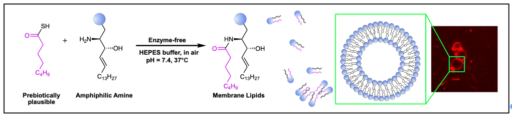“Aqueous synthesis of membrane lipids via amide formation between amphiphilic amines and thioacids”. Jiyue Chen, Lalita Tanwar, Peng Ji, Roberto J. Brea, Neal K. Devaraj. ChemSystemsChem 2025, 7 (3), e202400077. DOI: 10.1002/syst.202400077.