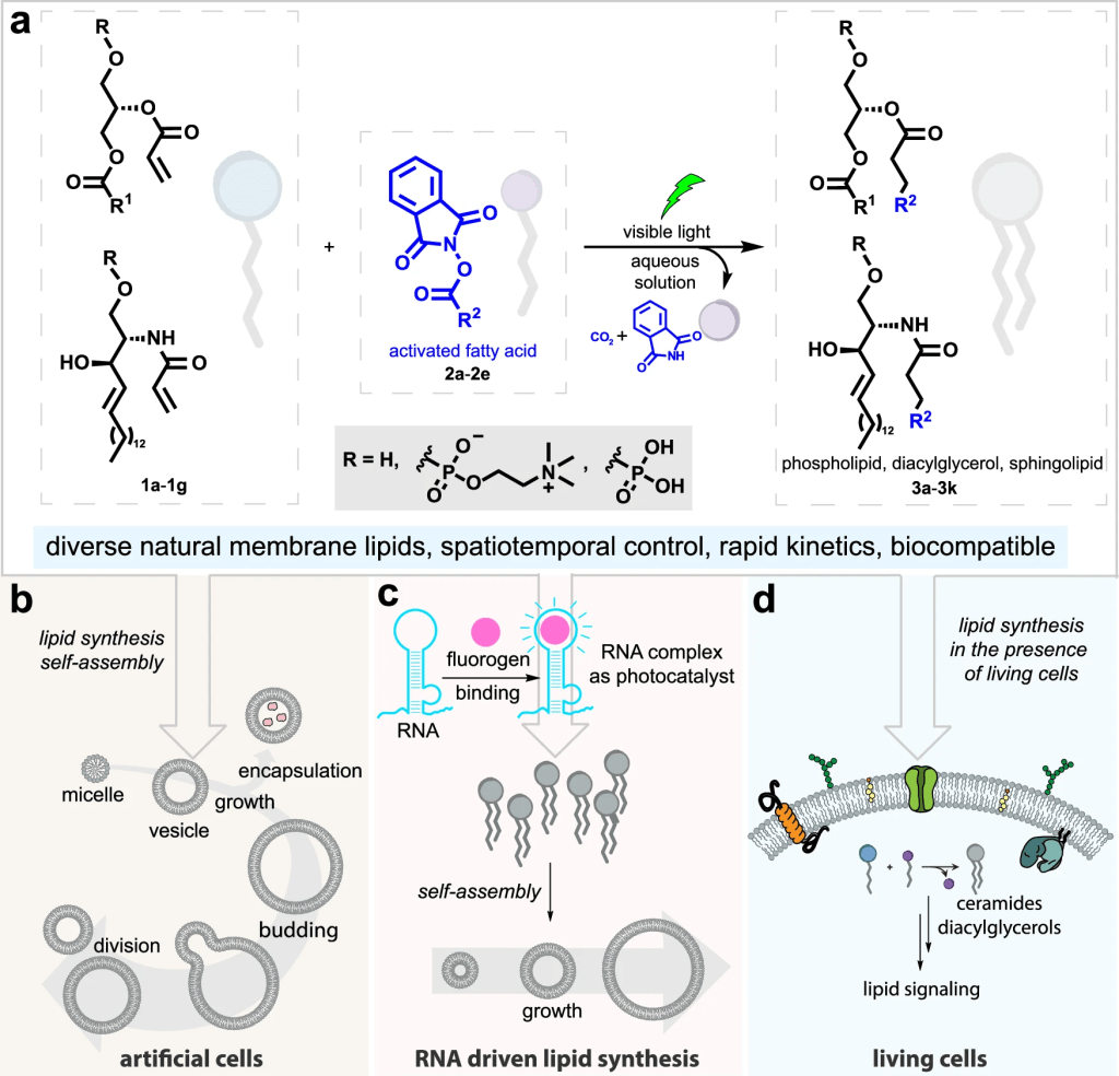 “Photochemical synthesis of natural lipids in artificial and living cells”. Peng Ji, Alexander Harjung, Caroline H. Knittel, Alessandro Fracassi, Jiyue Chen, Roberto J. Brea, Neal K. Devaraj. Nat. Commun. 2025, 16 (1), 5068. DOI: 10.1038/s41467-025-60358-4.